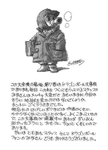 Toriyama lui-même le reconnaît dans la note illustrée qui ouvre le Daizenshū 7, où il remercie explicitement les membres du staff pour le travail colossal accompli. Dans le cas des Daizenshū,Toriyama n’a donc fait que relire, tandis que Watanabe et son équipe se sont chargés de la conception, la rédaction et la mise en forme du contenu.
